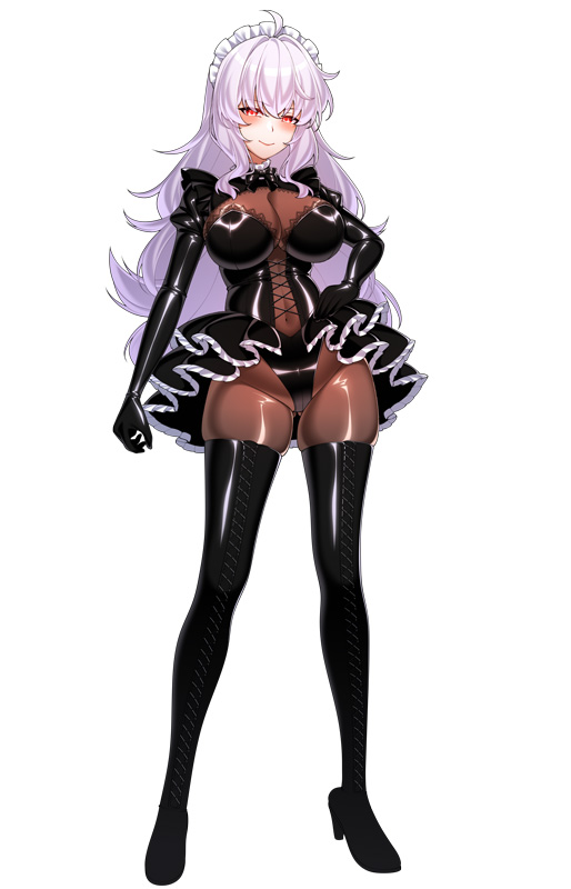 その衣装は主人であるミアと同じく戦闘用にカスタマイズされたメイド服であり、扇情的な外見ながらもメイドとしての給仕と奉仕、そして戦闘用に自らの能力を高める観点で合理的な衣装となっている。