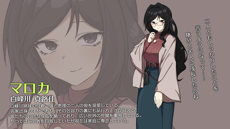 白峰川姉妹の、嶺と恵理の母親。娘たちを溺愛している。