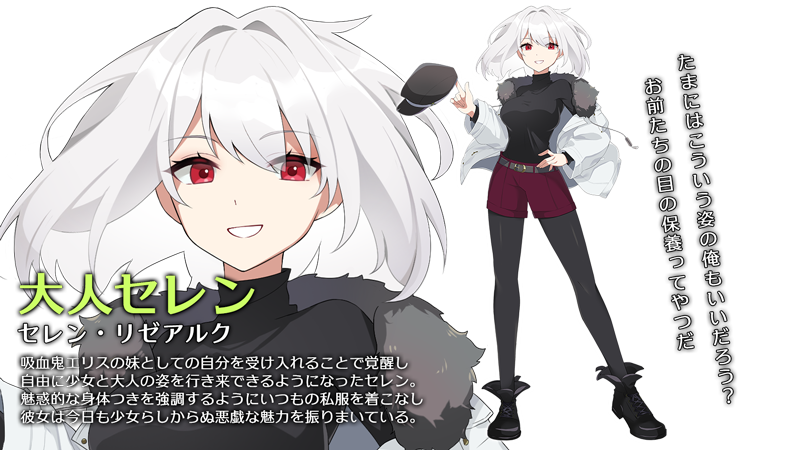 セレンが吸血鬼エリスの妹としての自分を受け入れることで吸血鬼の真の力(※)に覚醒し、自由に少女の姿と成長した大人の姿を行き来できるようになった状態。こちらは大人の姿である。