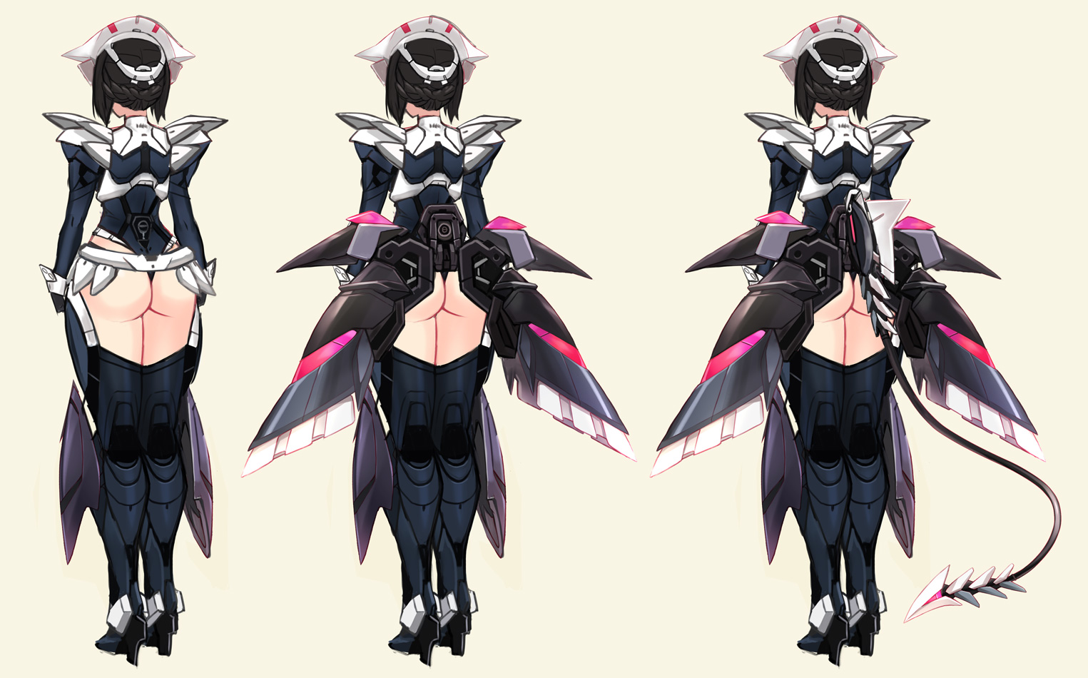 特にフェンリルテイルは手持ちの鞭としての用途のほか、背面に接続することで自由自在に運用できる尻尾のような器官として扱うこともでき、手持ちの二砲と合わせて近距離に遠距離と、柔軟な戦闘を可能としている。